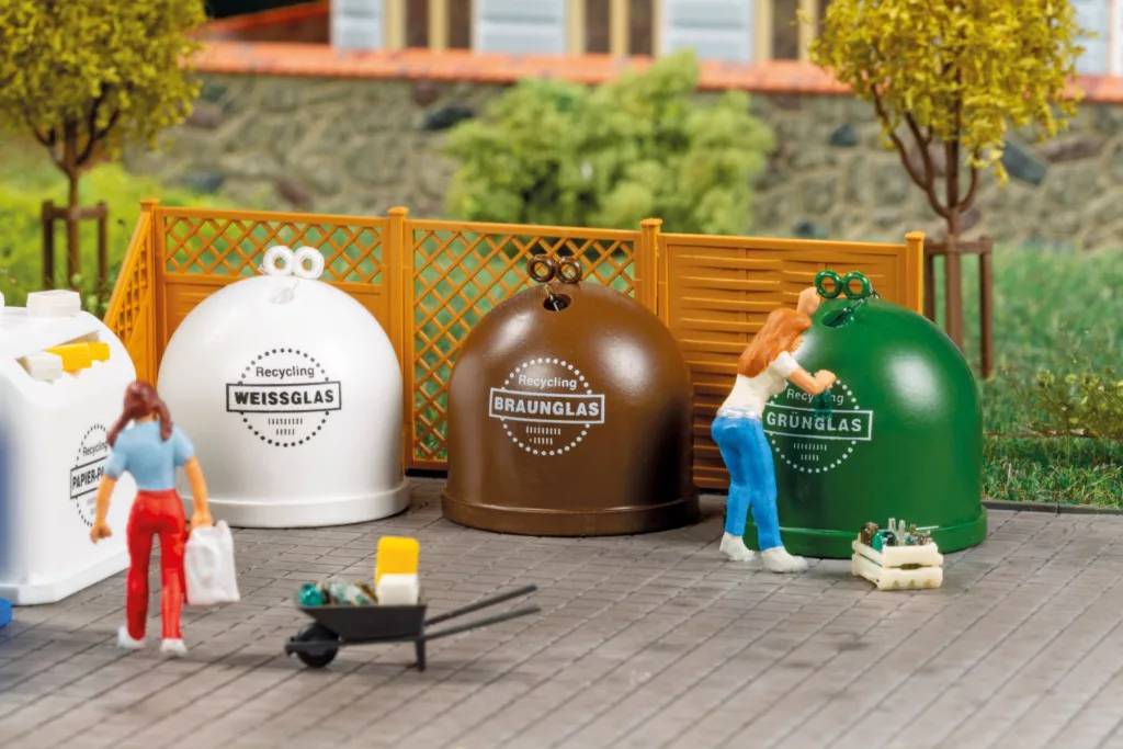 Auhagen 41695 Szelektív hulladékgyűjtő konténerek, kiegészítőkkel - 5 db (H0)