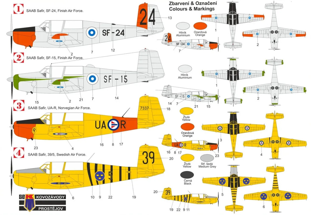 KPM0524 SAAB Safir „In Nodric services“ repülőgép makett 1/72