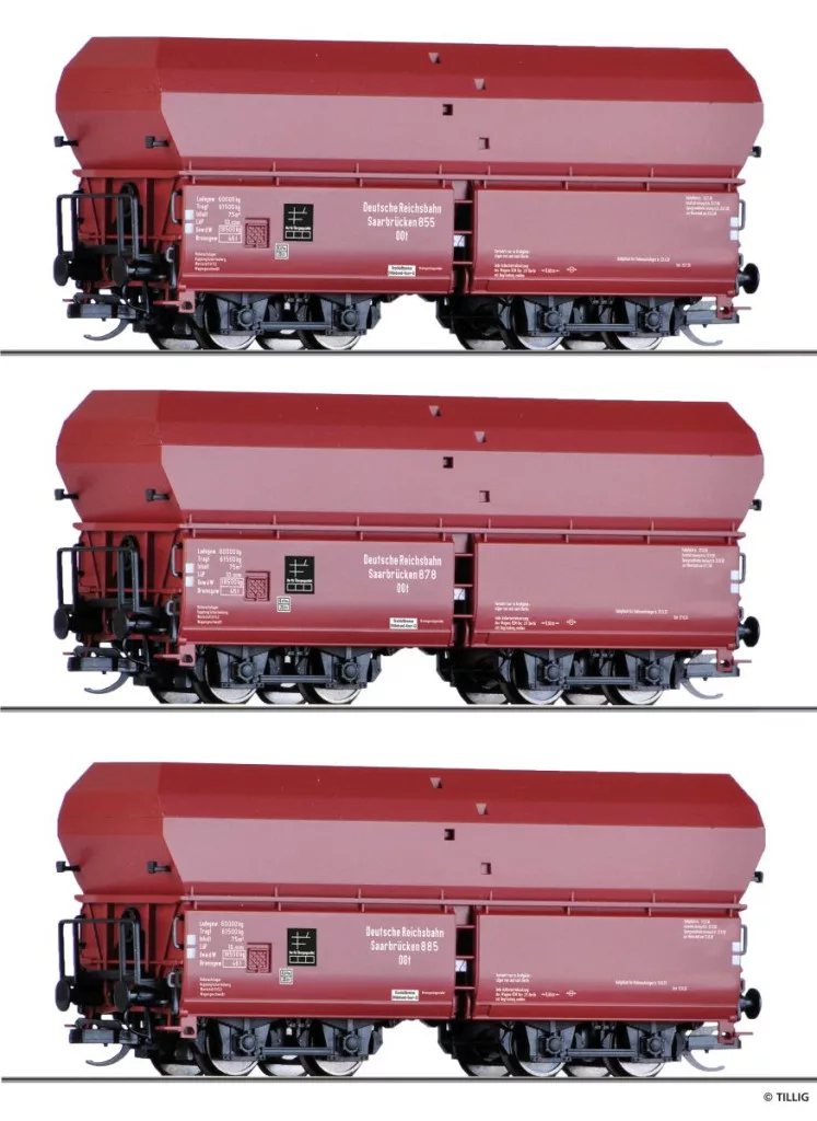 Tillig 1138 Önürítős négytengelyes teherkocsi-készlet, 3-részes OOt Saarbrücken, DRG (E2) (TT)