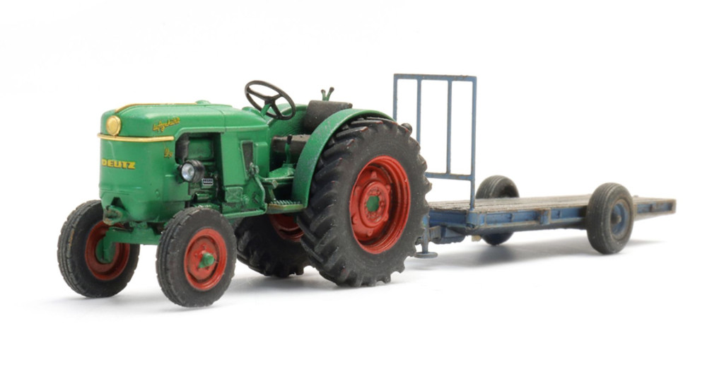 Artitec 387.706 Deutz D30 traktor, gyümölcsszállító utánfutóval (H0)