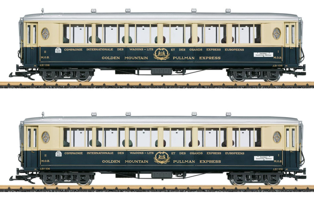LGB 36661 Személykocsi-pár, négytengelyes szalonkocsi, Golden Mountain Pullman Express, MOB (E2) (G) Set 2