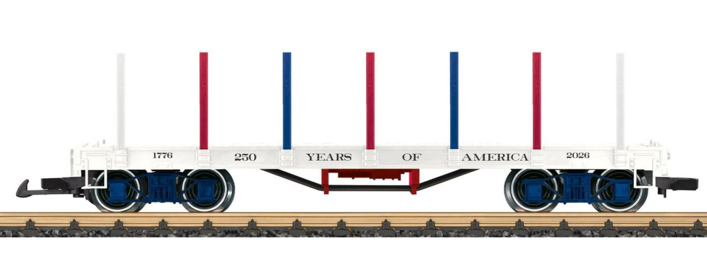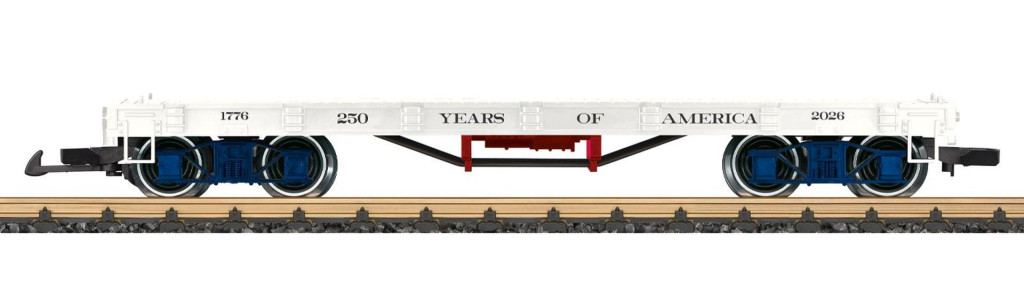 LGB 40598 Amerikai rakoncás négytengelyes teherkocsi, 250 Years of Amerika (E6) (G)