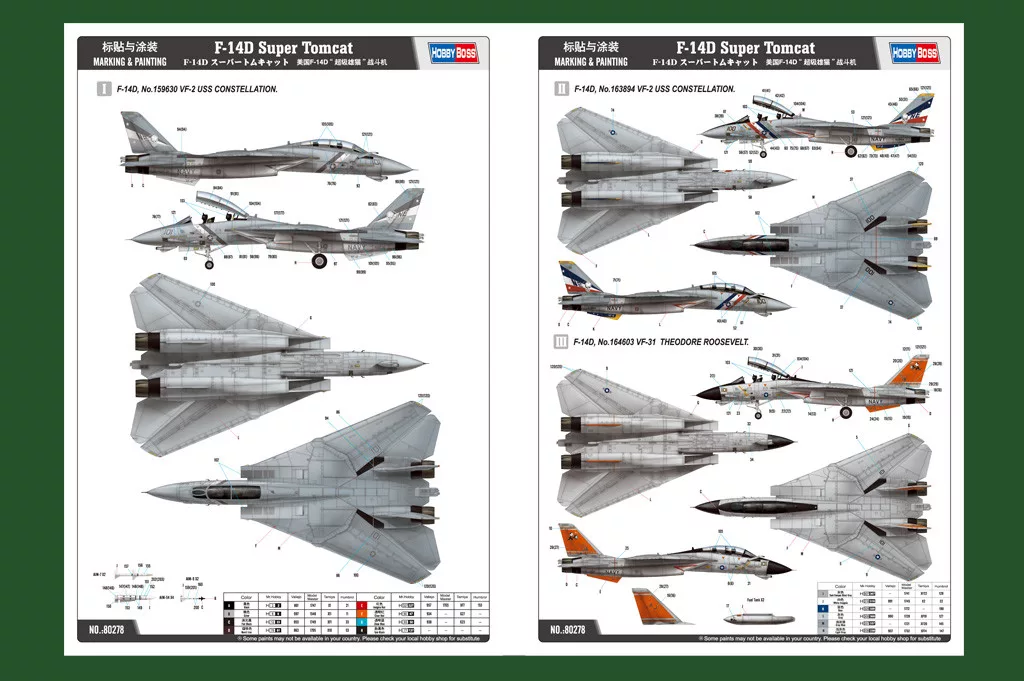 HobbyBoss 80278 Grumman F-14D Super Tomcat repülőgép makett (1/72)