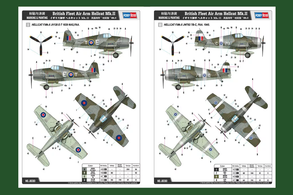 HobbyBoss 80361 British Fleet Air Arm Hellcat Mk.II repülőgép makett (1/48)