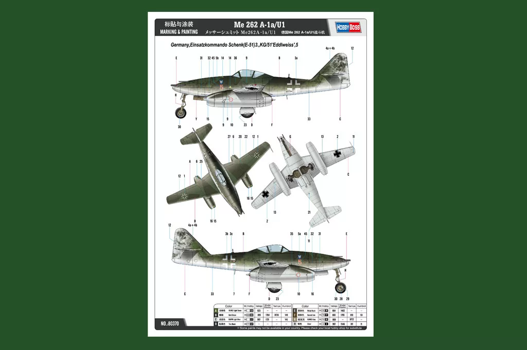 HobbyBoss 80370 Messserschmitt Me-262 A-1a/U1 repülőgép makett (1/48)