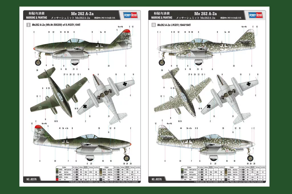 HobbyBoss 80376 Messerschmitt Me-262 A-2a repülőgép makett (1/48)