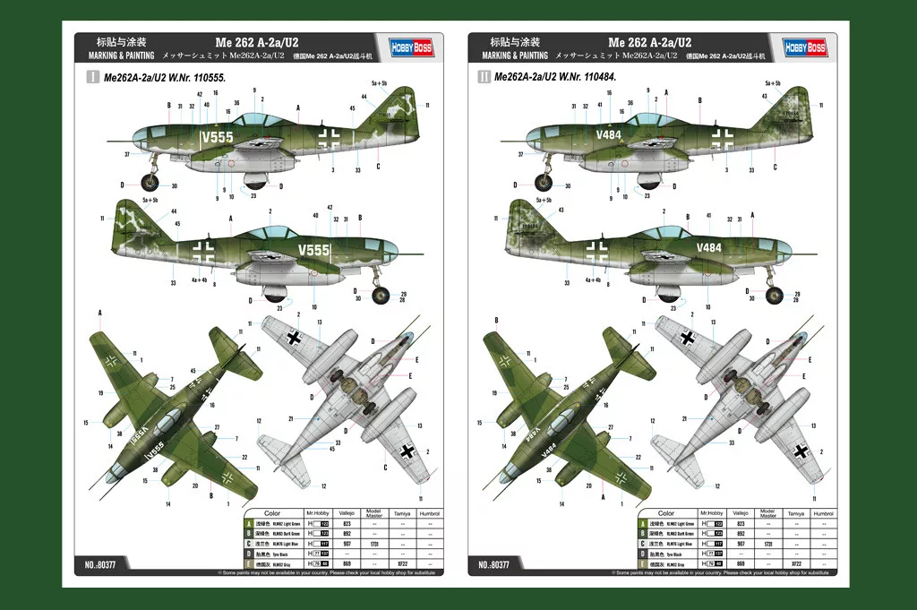 HobbyBoss 80377 Messerschmitt Me-262 A-2a/U2 repülőgép makett (1/48)