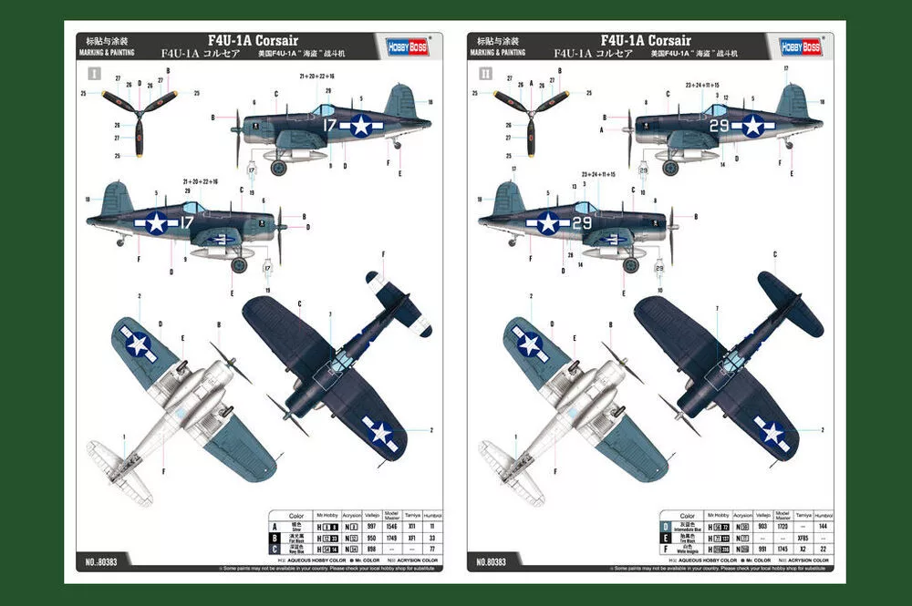 HobbyBoss 80383 Vought F4U-1A Corsair repülőgép makett (1/48)