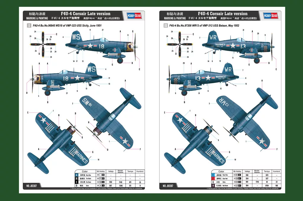 HobbyBoss 80387 Vought F4U-4 Corsair Late version repülőgép makett (1/48)