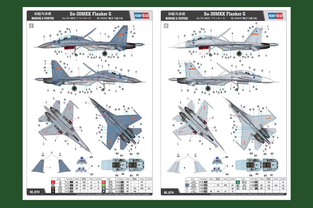HobbyBoss 81714 Russian Su-30MKK Flanker G repülőgép makett (1/48)