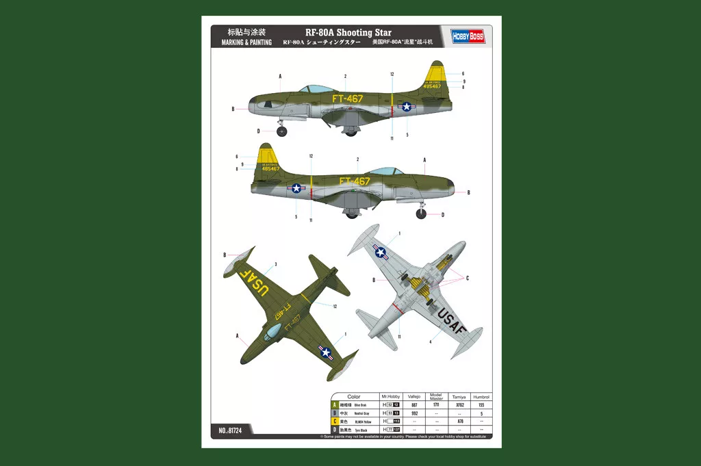 HobbyBoss 81724 Lockheed RF-80A Shooting Star fighter repülőgép makett (1/48)