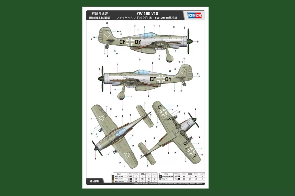 HobbyBoss 81747 Focke-Wulf FW-190 V18 repülőgép makett (1/48)