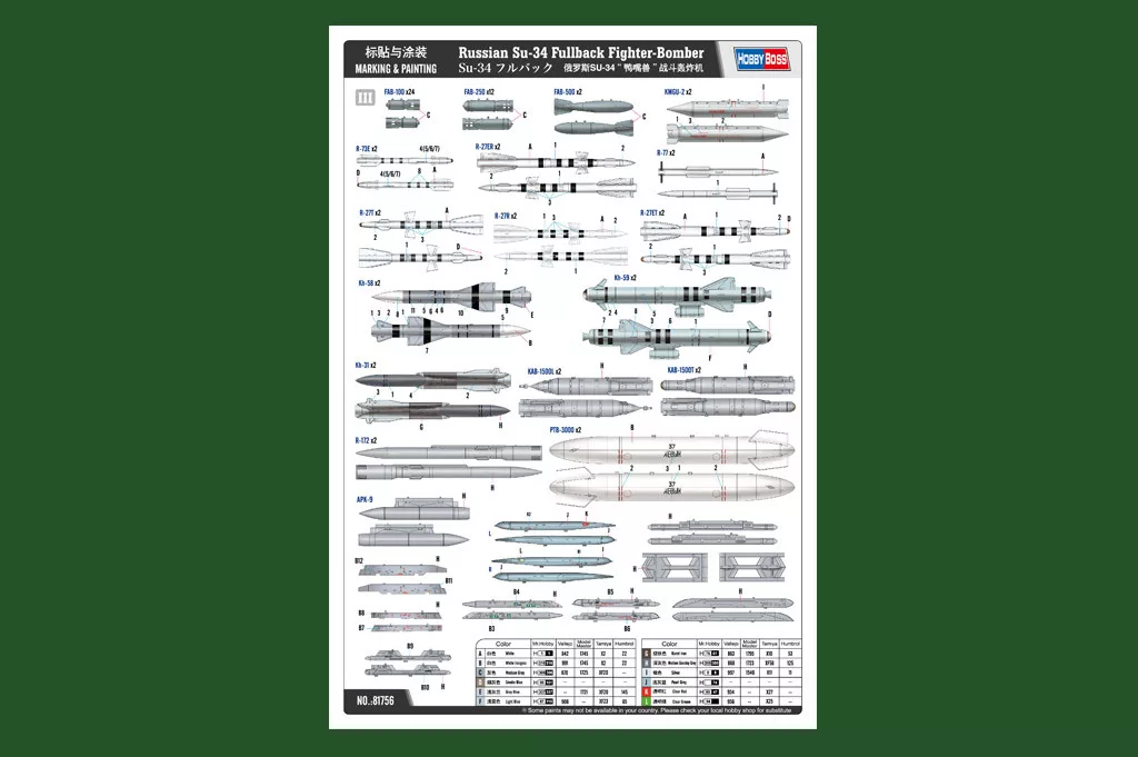 HobbyBoss 81756 Russian Su-34 Fullback Fighter-Bomber repülőgép makett (1/48)