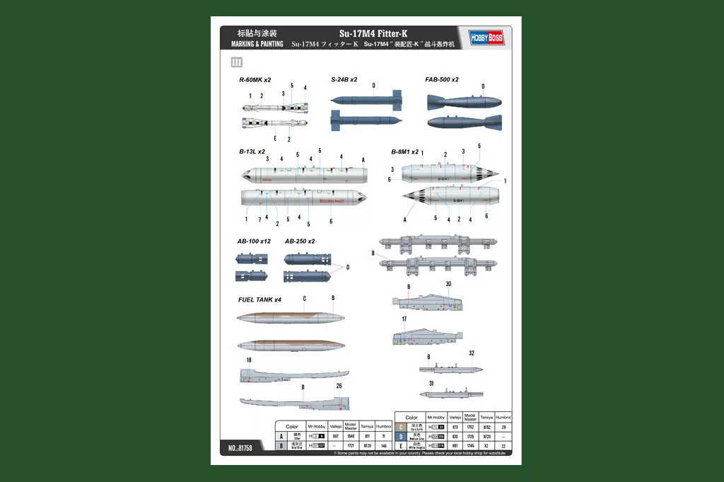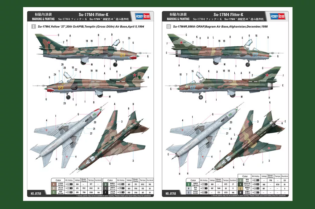 HobbyBoss 81758 Soviet Su-17M4 Fitter-K repülőgép makett (1/48)