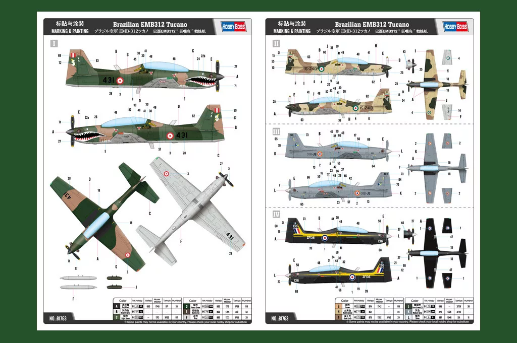 HobbyBoss 81763 Brazilian EMB312 Tucano repülőgép makett (1/48)