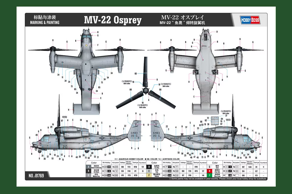 HobbyBoss 81769 Bell Boeing MV-22 Osprey repülőgép makett (1/48)