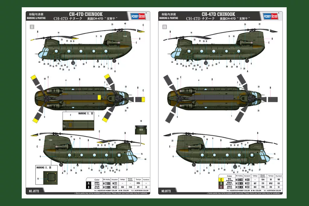 HobbyBoss 81773 Boeing CH-47D Chinook helikopter makett (1/48)