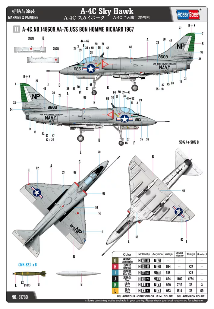 HobbyBoss 81789 Douglas A-4C Skyhawk repülőgép makett (1/48)
