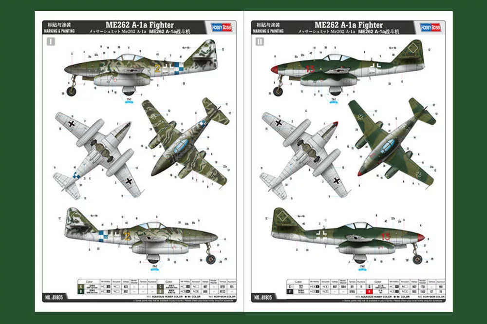 HobbyBoss 81805 Messerschmitt Me-262 A-1a Fighter repülőgép makett (1/18)