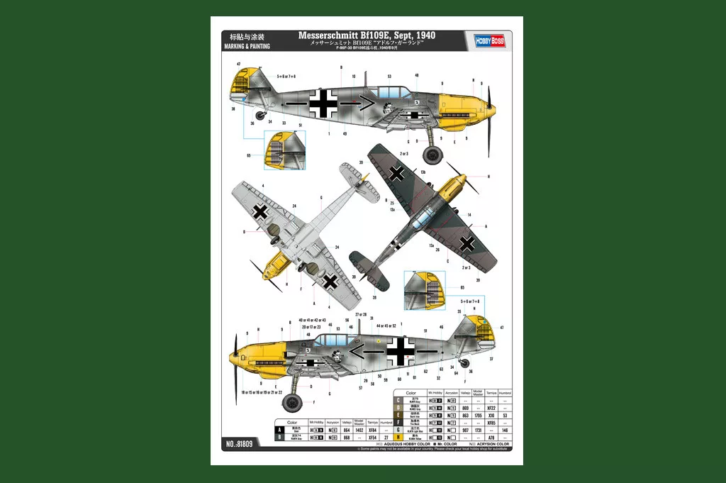 HobbyBoss 81809 Messerschmitt Bf109E, Sept, 1940 repülőgép makett (1/18)