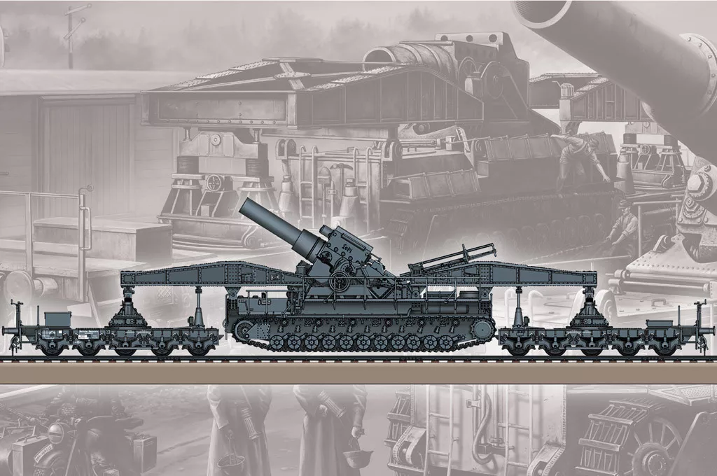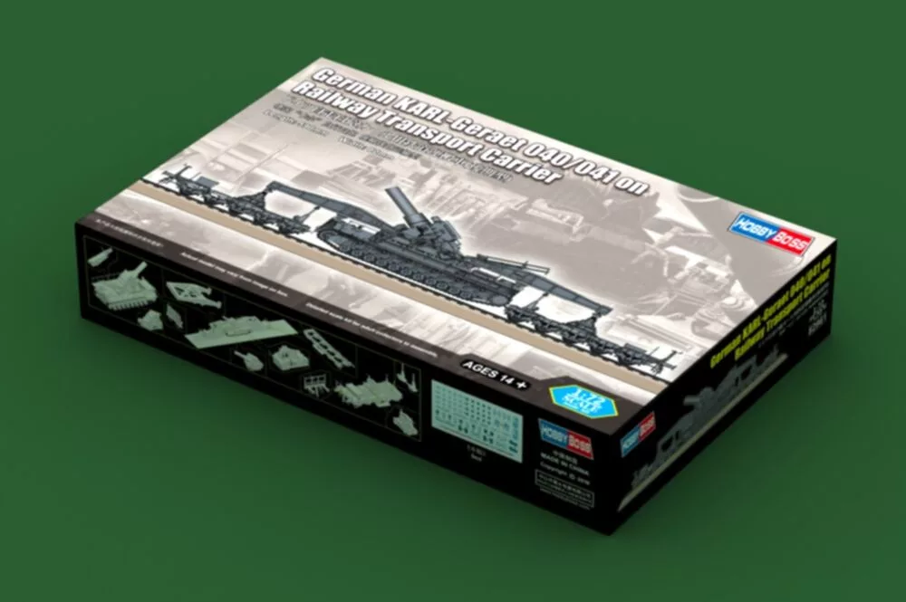 HobbyBoss 82961 German KARL-Geraet 040/041 on Railway Transport Carrier vasúti makett (1/72)