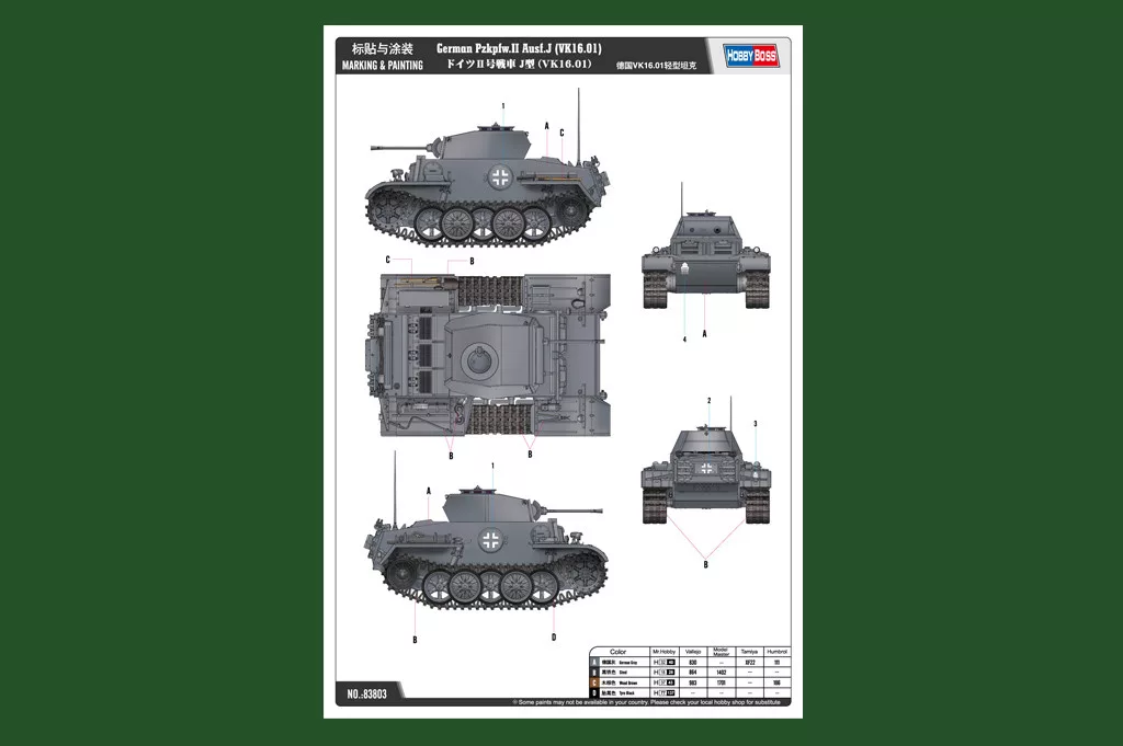 HobbyBoss 83803 German Pzkpfw.II Ausf.J (VK1601) harcjármű makett (1/35)