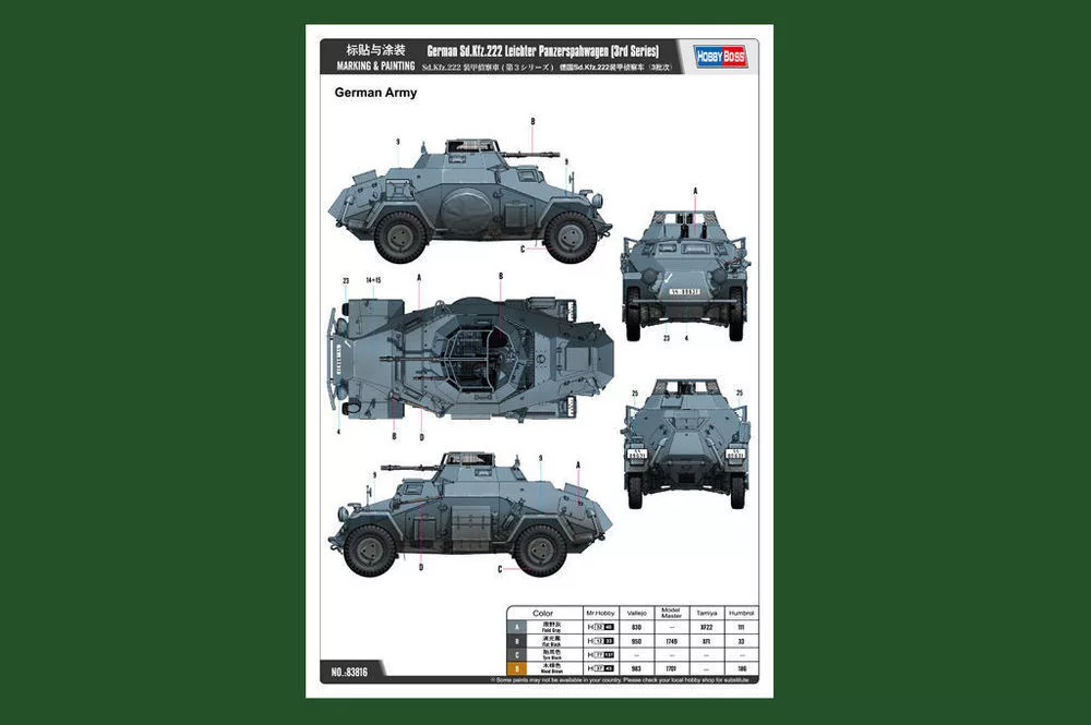 HobbyBoss 83816 German Sd.Kfz.222 Leichter Panzerspahwagen harcjármű makett (1/35)