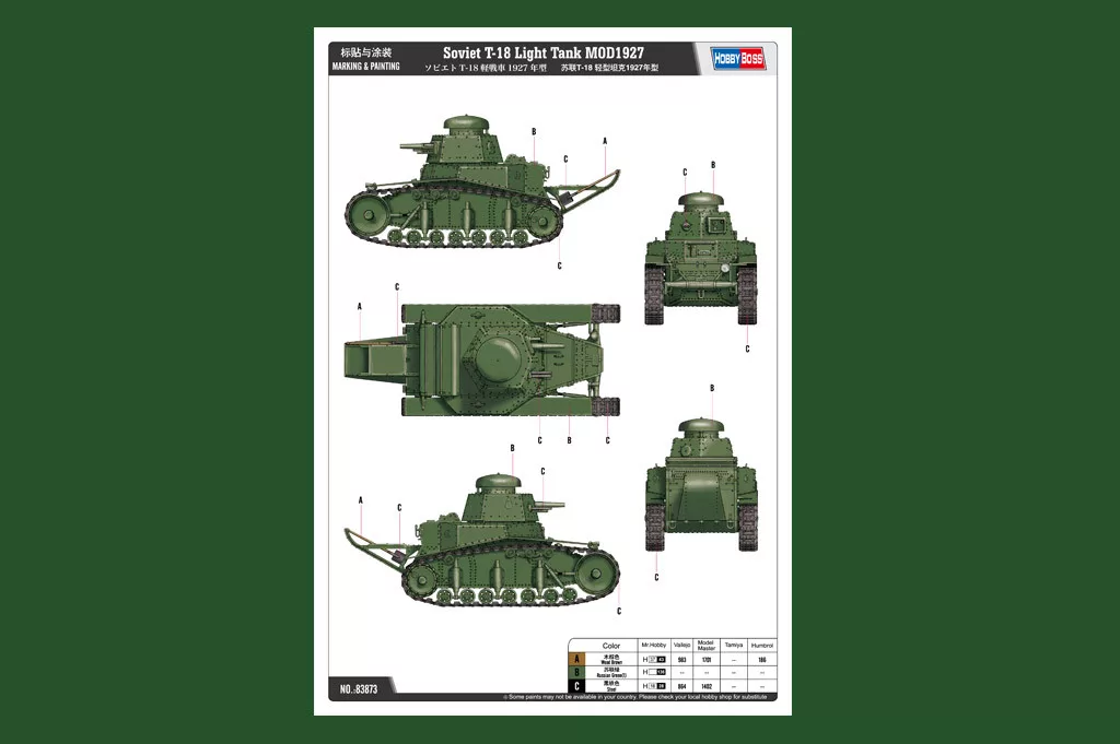 HobbyBoss 83873 Soviet T-18 Light Tank MOD1927 harcjármű makett (1/35)