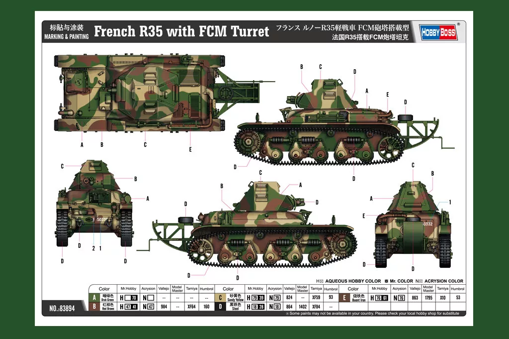 HobbyBoss 83894 French R35 with FCM Turret harcjármű makett (1/35)