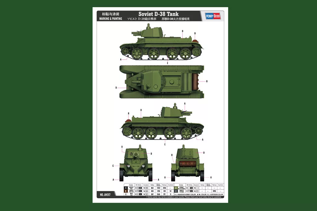 HobbyBoss 84517 Soviet D-38 Tank harcjármű makett (1/35)