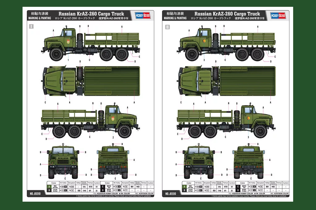 HobbyBoss 85510 Russian KrAZ-260 Cargo Truck harcjármű makett (1/35)