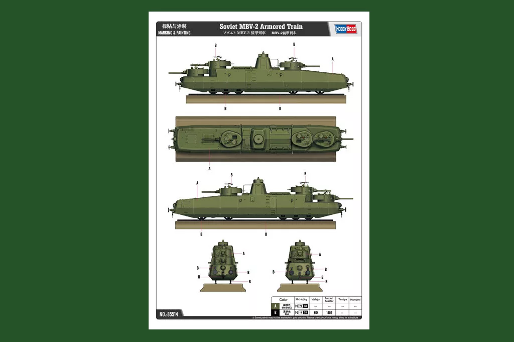 HobbyBoss 85514 Soviet MBV-2 (late F-34 GUN) vasúti makett (1/35)