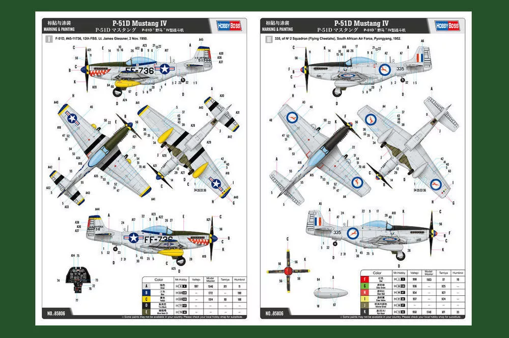 HobbyBoss 85806 North American P-51D Mustang IV Fighter repülőgép makett (1/48)