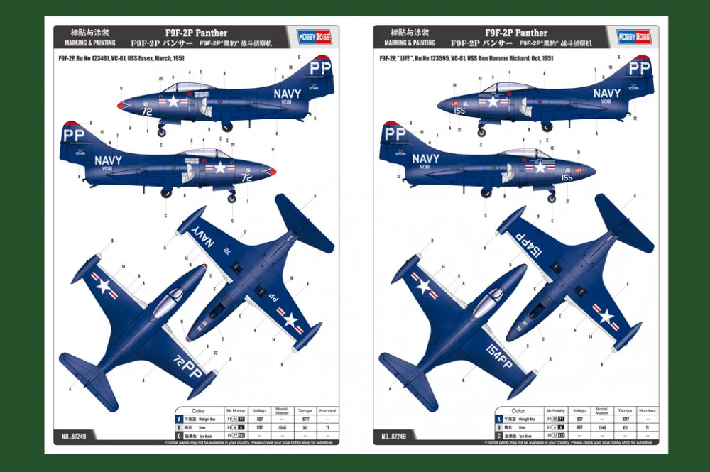 HobbyBoss 87249 Grumman F9F-2P Panther 1/72 repülőgép makett