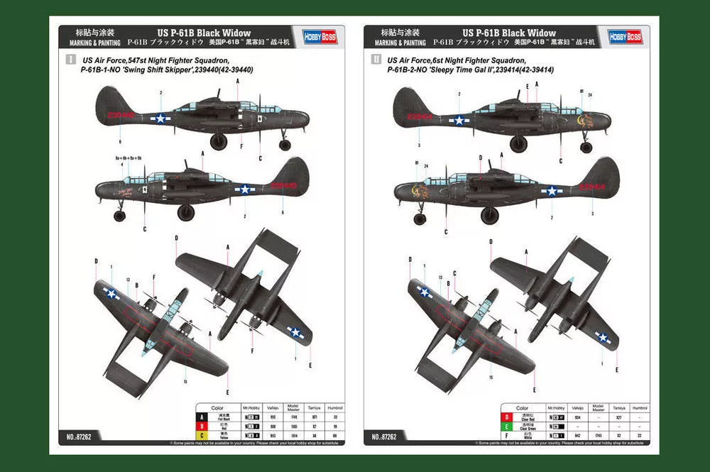 HobbyBoss 87262 Northrop P-61B Black Widow repülőgép makett (1/72)