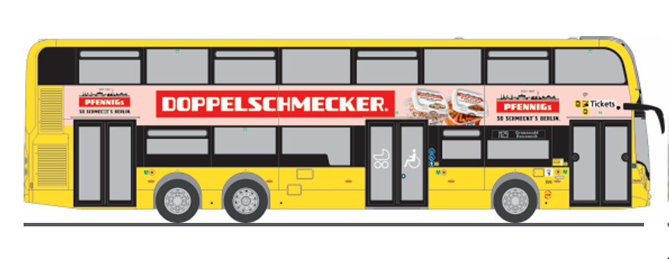 Rietze 78030 Alexander Dennis Enviro 500 emeletes autóbusz, BVG - Pfennigs Doppelschmecker (H0)