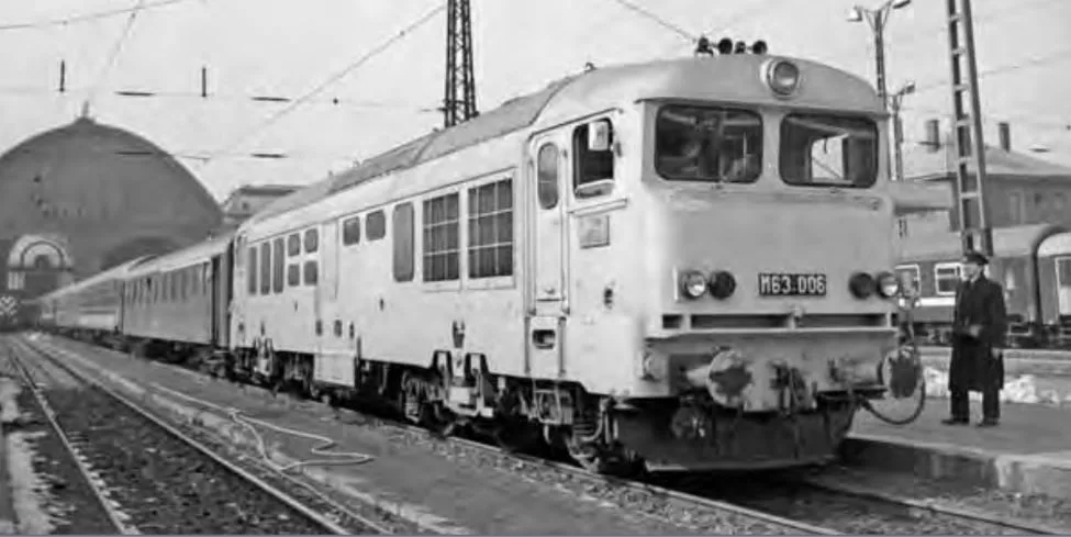 A típusról:A nagytömegű fővonali személyszállító- és tehervonatok továbbítására rendelte a MÁV a Ganz-MÁVAG-tól az M63 sorozatú villamos hajtásrendszerű dízelmozdonyokat, amelyek közül az első kettő 1970-ben készült el. Újszerű volt a mozdony váltakozó-egyenáramú hajtásrendszere. A Mozdony hajtóerőgépe a licencia alapján gyártott Ganz-MÁVAG SEMT Pielstick dízelmotor, A dízelmotor egy háromfázisú szinkron főgenerátort hajt, amely hídkapcsolású egyenirányítón át táplálja a két forgóvázba beépített hat egyenáramú vontatómotort. A mozdony villamos-fékberendezése 30 km/h-nál nagyobb sebességnél működtethető. A segédüzemeket hajtó villamosmotorokat és a vonatfűtést a főgenerátorral közös forgórészű szinkrongenerátor táplálja. a bonyolult szerkezetű és meghibásodásra hajlamos mozdonyból 1970-1975 között összesen 10 db készült, mivel az energiahelyzet miatt a MÁV számos olyan vonal villamosítását is tervbe vette, amelyek a korábbiakban erre nem voltak kijelölve.A mozdonyok üzemének kezdeti időszakában előforduló hibákat fokozatosan sikerült kiküszöbölni és kisebb változtatásokkal megszüntetni. Több gépen befecskendező szivattyút kellett cserélni, mechanikus sérülések miatt. Kenési eredetű hibák is jelentkeztek a vontatómotorok marokcsapágyainál. Kisebb szerkezeti átalakításokat hajtottak végre a turbófeltöltő konzoljainak repedése miatt, hasonlóképpen a kipufogórendszer hődilatációs szerkezetének tömítését kellett cserélni. Többször előfordultak kábel- és olajcső-törések, amelyek kivitelezési hibának voltak tekinthetők.1980-ban a gépeket Szombathelyre állomásították, ahová valójában 6 gép érkezett meg. Az M63,009 psz. gép az év végén, a 008 psz. mozdony 1981-ben került ki a Főműhelyből. A 006 és 007 psz. gép a műhelyben maradt, ahol alkatrészpótlásra használták fel. A 008 psz. mozdony 1982-ben visszakerül a műhelybe. 1985. január 7-én a 904 számú gyorsvonattal az M63.004 psz. mozdony főgenerátor forgórésze szétrepült. A mozdonyt a Főműhelybe szállították, ahol már nem újították fel. A főműhelyben tárolt négy mozdonyt (004, 006, 007 és 008) 1987. szeptember 7-én selejtezte a MÁV. Ettől kezdve a maradék 6 mozdonnyal többször láttak el tehervonati szolgálatot, mert egyre több lett a szolgálatképtelenséggel járó meghibásodás. 1989-től már csak szakaszosan üzemeltek. 1990-ben az Északi Főműhelybe vontatták a gépeket, ahol le is selejtezték őket.Ebből a mozdonytípusból mára csak egy példány maradt fenn. Az M63,003 psz. mozdonyt jelölték ki múzeális célra. A korábban Szombathelyen tárolt mozdony 2009-től a Magyar Vasúttörténeti Parkban üzemképtelen állapotban látható. A Magyar Vasút Baráti Kör Egyesület elhatározta, hogy megmenti, ezért első lépésként (több év utánajárás után) sikerült elérni, hogy a gép 2015. október 22-én fedett helyre kerüljön. 2018-ra újrafestették a mozdonyt.