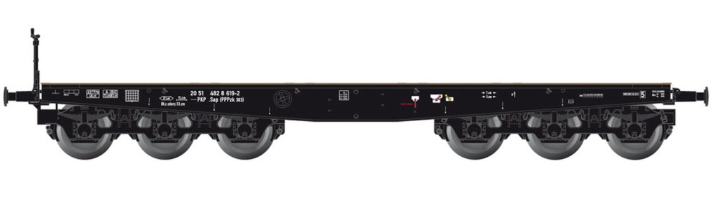 Artitec 20.323.19 Nehézteherszállító hattengelyes pőrekocsi, SSyms46 619-3, PKP (E4) (H0)