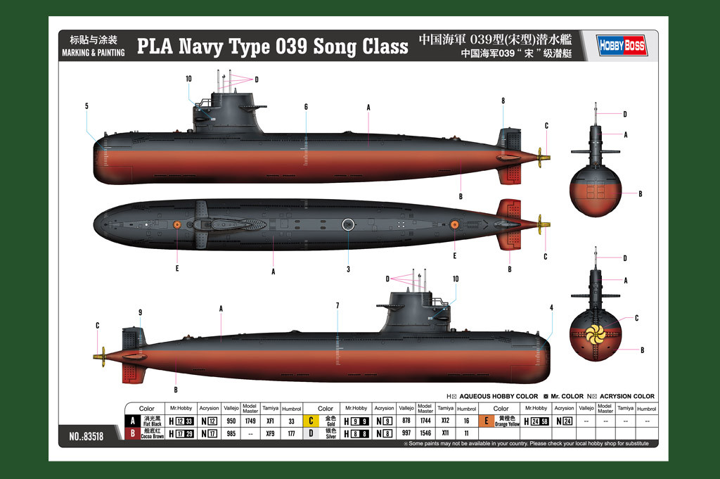 HobbyBoss 83518 PLA Navy Type 039 Song Class tengeralattjáró makett (1/350)