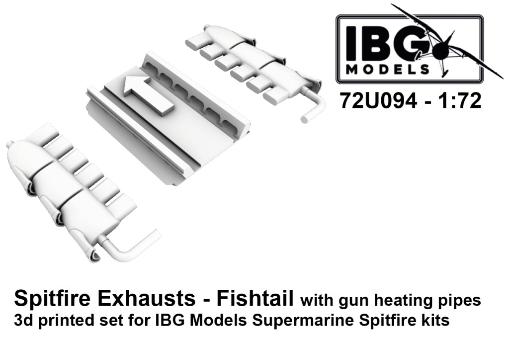 IBG Models 72U094 Supermarine Spitfire Exhausts - Fishtail Type with gun heating pipes - 3d Printed Set (1/72) feljavító készlet