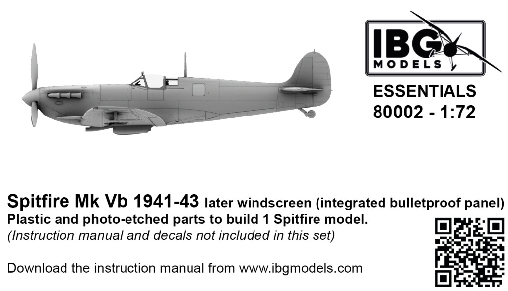 IBG Models 80002 Spitfire Mk Vb 1941-43 - Later Windscreen (integrated bulletproof panel) (1/72) feljavító makett készlet