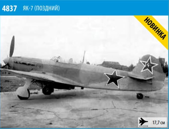 A típusról:A szovjet Jak-7B vadászgép a Jak-7 továbbfejlesztett változata, amelynek modernizálása során 1180 lóerős M-105PF motorral szerelték fel, majd később (1943 tavaszától) alacsonyabb orrrésszel és csepp alakú pilótafülkével, amely jobb hátsó kilátást biztosított. A puskacaliberű SHKAS szinkron géppuskákat nagy kaliberű, 12,7 mm-es UBS géppuskákra cserélték. A Jak-7 vadászgép gyártását két gyárban indították el: a novoszibirszki 153-as gyárban (1942 augusztusától 1943 decemberéig) és a tusinszki 82-es gyárban (1942 májusától 1944 júliusáig). Az ilyen típusú repülőgépek a Vörös Hadsereg légierőjének egyik fő vadászgépeivé váltak, és a háború végéig minden fronton harcoltak.